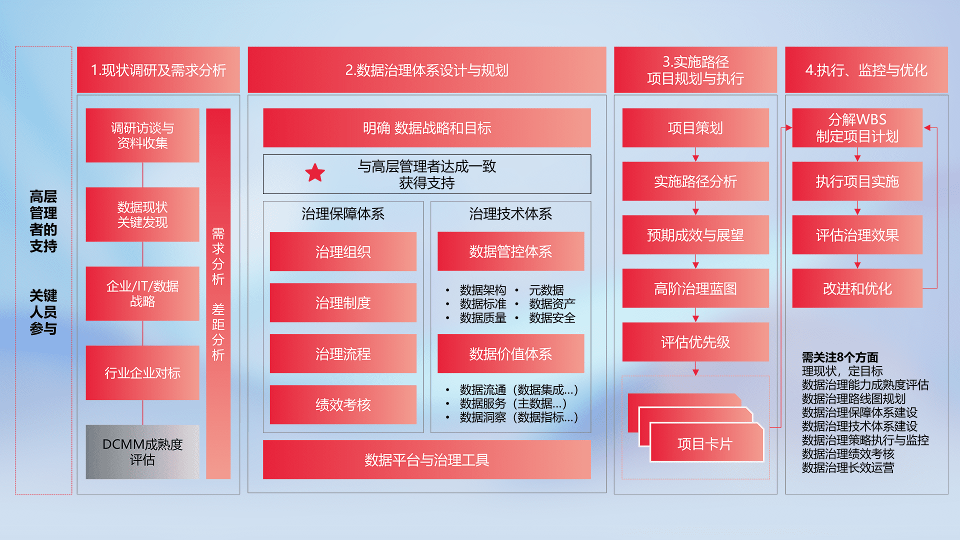 制定并执行统一的数据标准,,,规范数据定义和格式,,,消除冗余和不一致性,,,,实现跨部门和跨系统的数据一致性,,为企业提供标准化的数据基础。。。